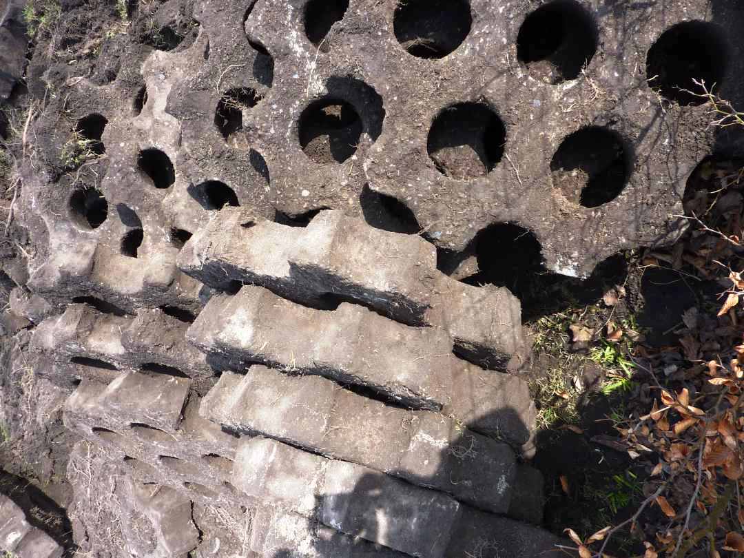 2012. Et forsøg på at rekonstruere en lille del af en "rullebane" opbygget af "Rasenstein - Græstørv sten".