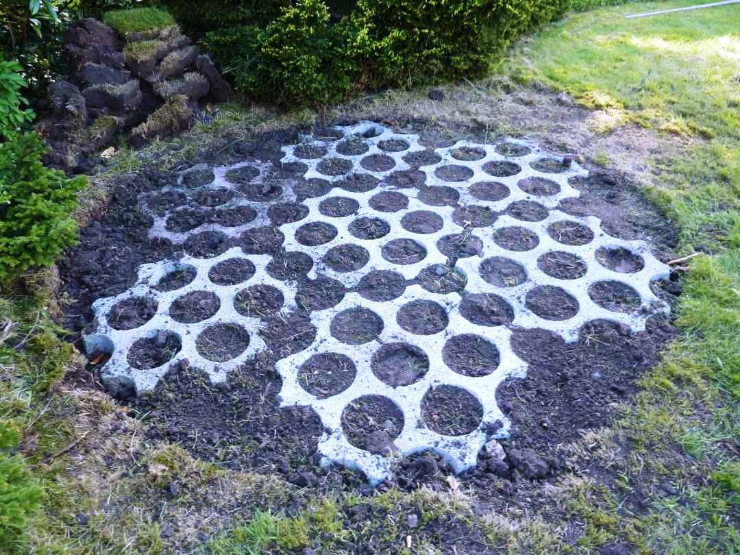 (I fagsprog kaldes et flyanlæg med jordvolde og camouflagenet for en "Felthangar"). Forbindelsesvej til en Felthangar ofte udført med Rasenlochsteine.