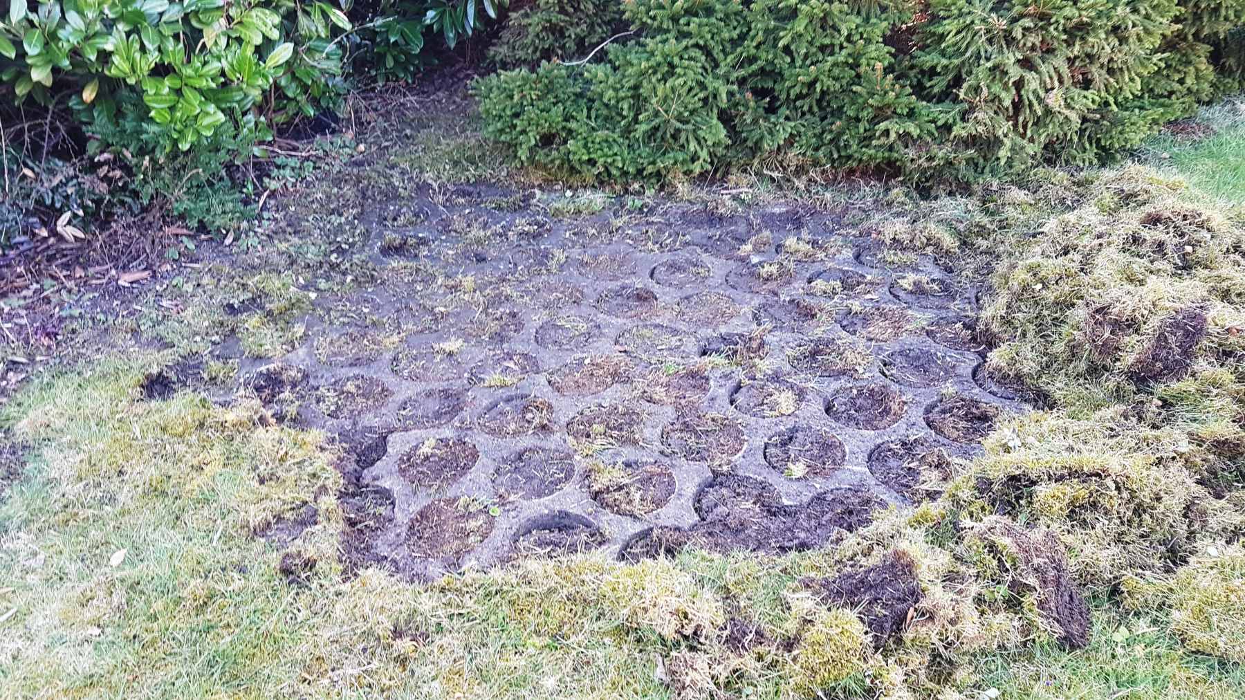 2019. Stenene er der endnu, men gartneren har undladt at klippe græsset helt tæt.